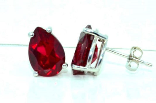 14Kt Gold 3 Ct Ruby Teardrop Pear Shape Stud Earrings