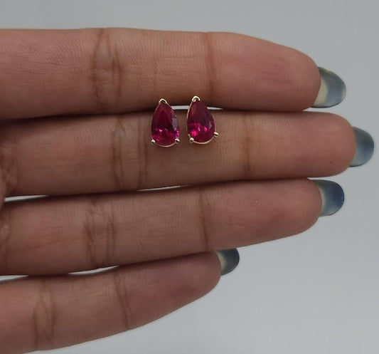 14Kt Gold Ruby Teardrop Pear Shape Stud Earrings