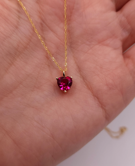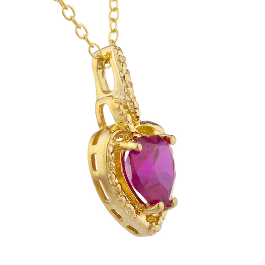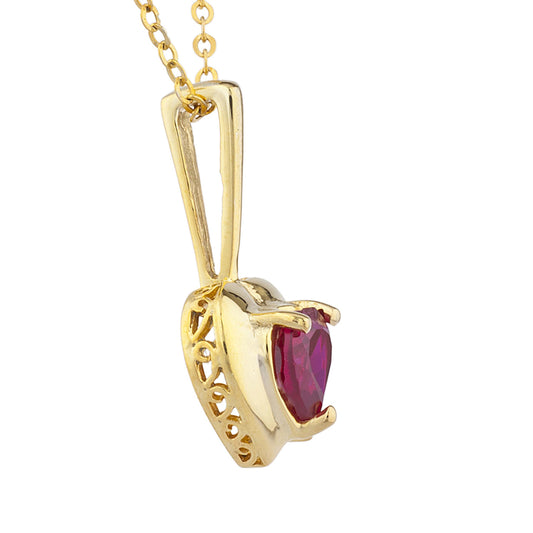 14Kt Gold Created Ruby Heart Design Pendant Necklace