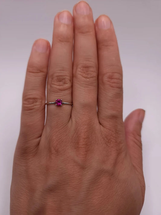 14Kt Gold Ruby Dainty Round Pendant Necklace