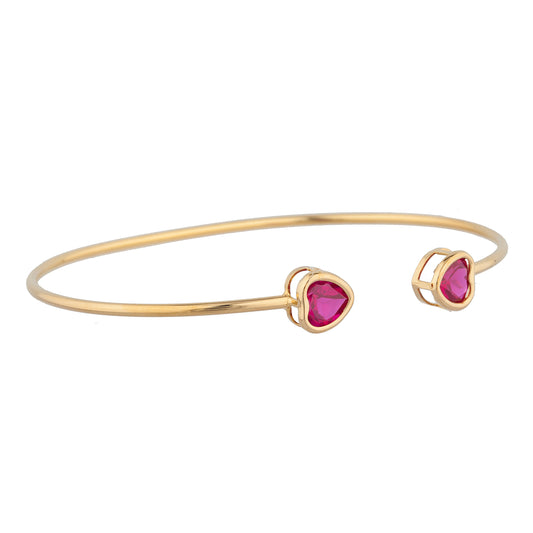 14Kt Gold Created Ruby Heart Bezel Bangle Bracelet