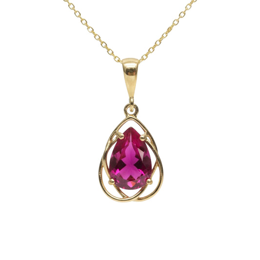 14Kt Gold 2 Ct Ruby Pear Teardrop Design Pendant Necklace