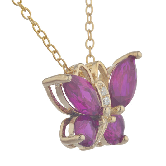 14Kt Yellow Gold Plated Created Ruby Butterfly Pendant