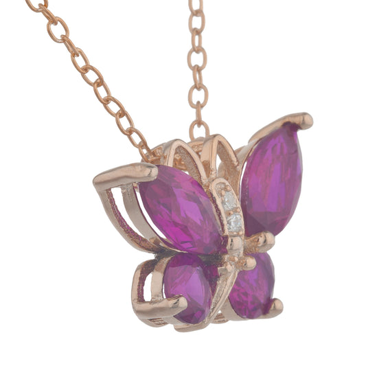 14Kt Rose Gold Plated Created Ruby Butterfly Pendant