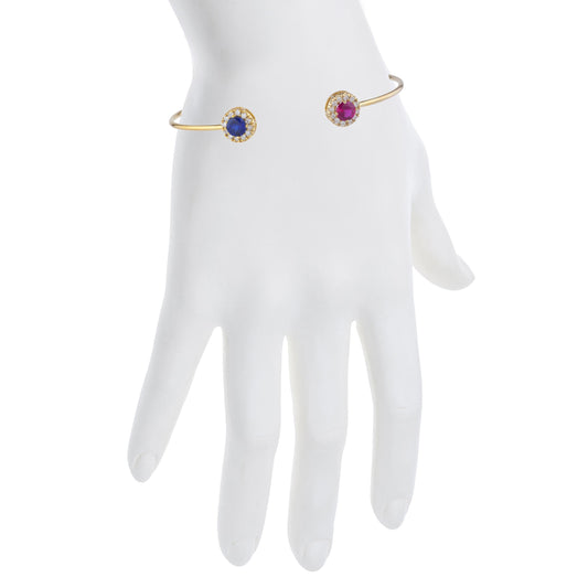 1 Ct Blue Sapphire & Ruby Halo Design Round Bangle Bracelet 14Kt Yellow Gold Rose Gold Silver