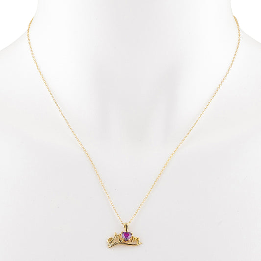14Kt Gold Created Ruby & Diamond Heart Mom Pendant Necklace