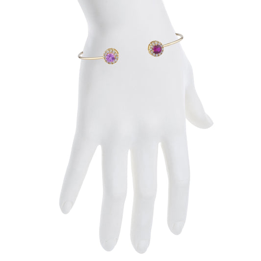 1 Ct Pink Sapphire & Ruby Halo Design Round Bangle Bracelet 14Kt Yellow Gold Rose Gold Silver