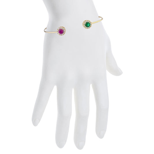 1 Ct Created Ruby & Emerald Halo Design Round Bangle Bracelet 14Kt Yellow Gold Rose Gold Silver