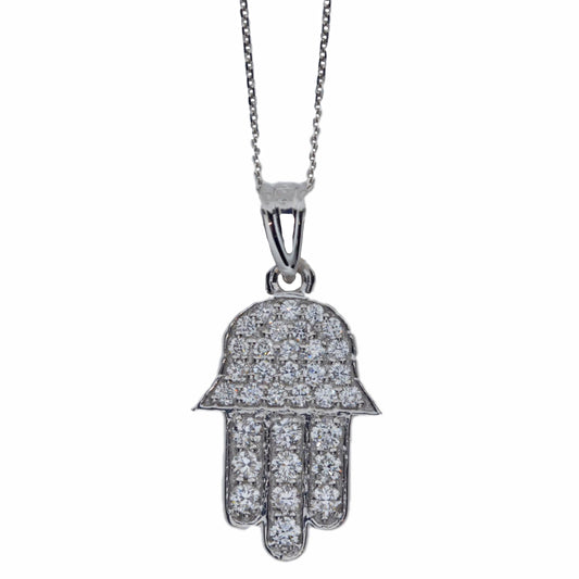 14Kt Gold 0.48 Ct Lab Grown Diamond Hamsa Pendant Necklace