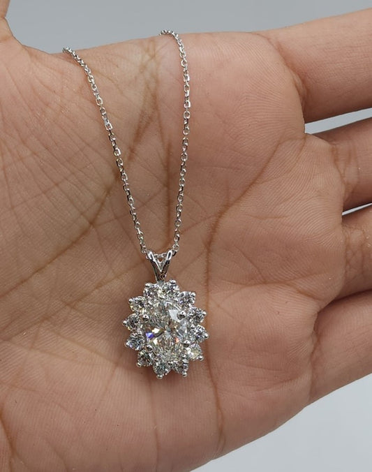 14Kt Gold 3.50 Ct Lab Grown Diamond Cluster Necklace