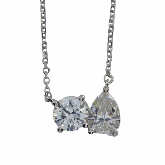 14Kt Gold 1.60 Ct 2 Stone Teardrop & Round Lab Grown Diamond Necklace