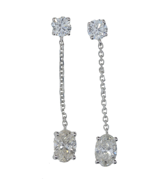 14Kt Gold 3 Ct Lab Grown 2 Stone Oval & Round Diamond Dangle Studs Earrings