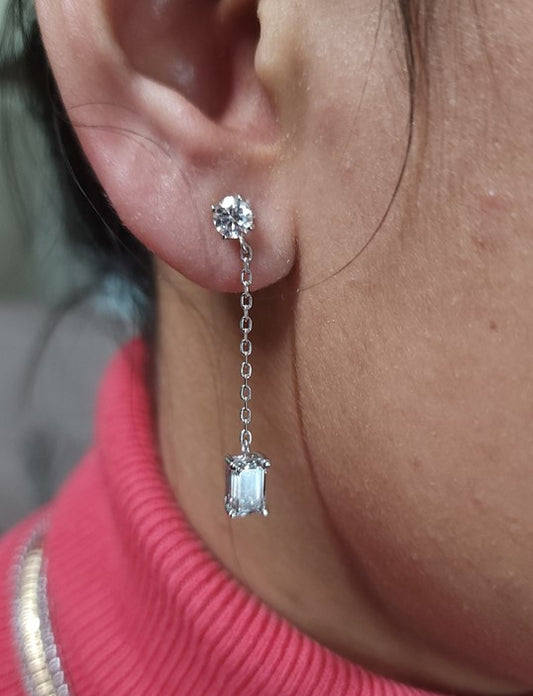 14Kt Gold 3 Ct Lab Grown 2 Stone Emerald Cut & Round Diamond Dangle Studs Earrings