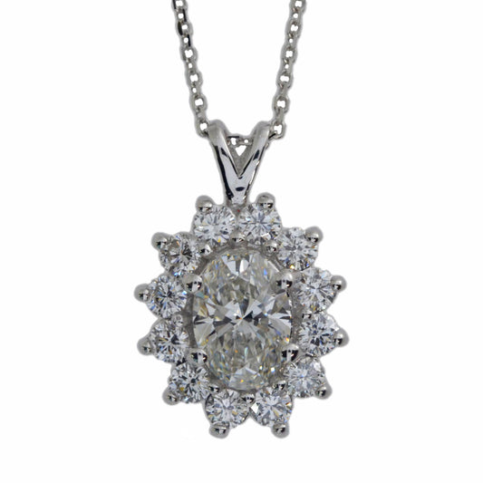 14Kt Gold 1.78 Ct Lab Grown Oval Diamond Solitaire Halo Pendant Necklace