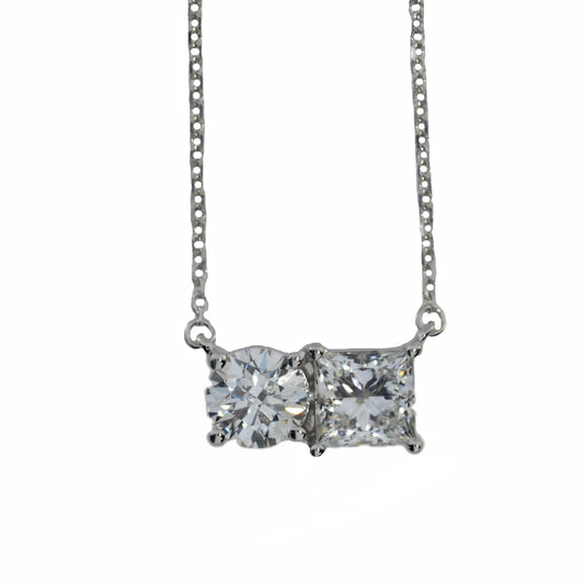 14Kt Gold 1.70 Ct 2 Stone Princess Cut & Round Lab Grown Diamond Necklace