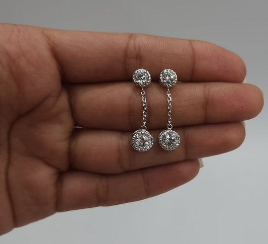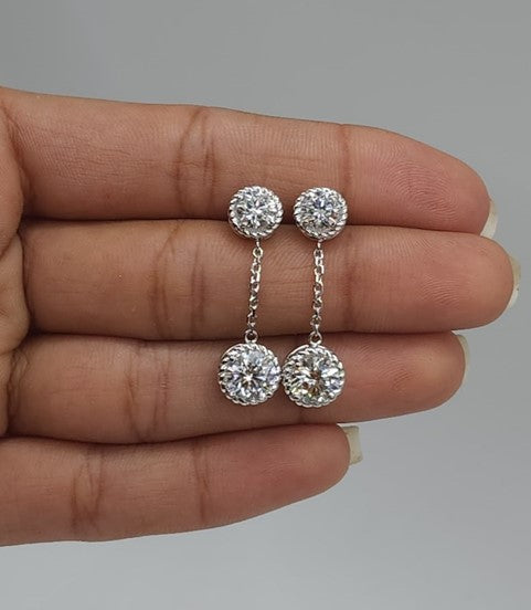 14Kt Gold 3 Ct Lab Grown Diamond 2 Stone Dangle Studs Earrings