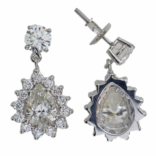 14Kt Gold 4.62 Ct Lab Grown Teardrop Halo Diamond Earrings