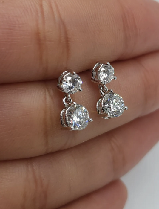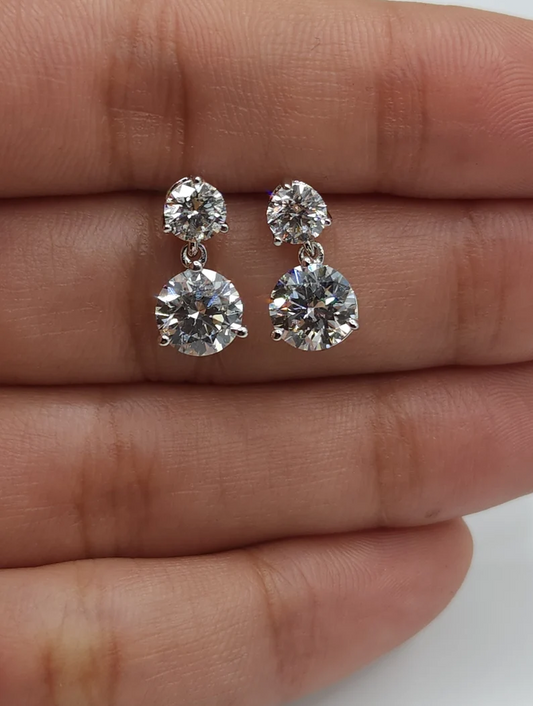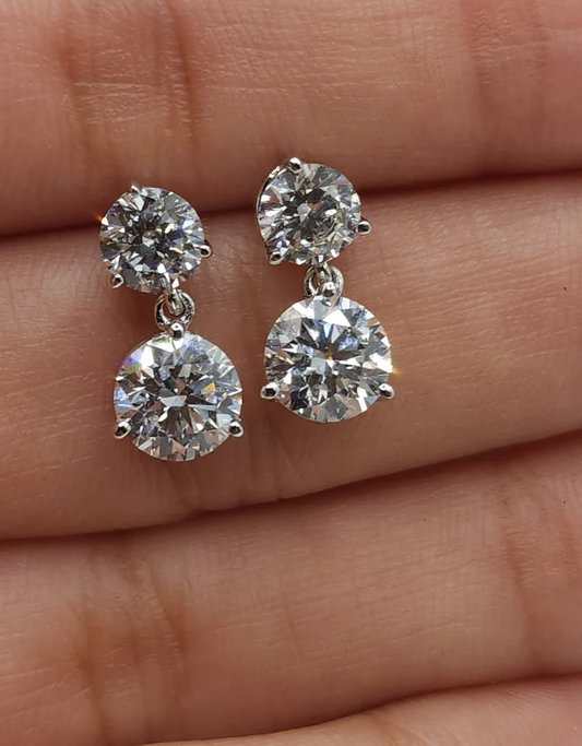 14Kt Gold 2 Ct Lab Grown Diamond 3 Prong Dangle Stud Earrings