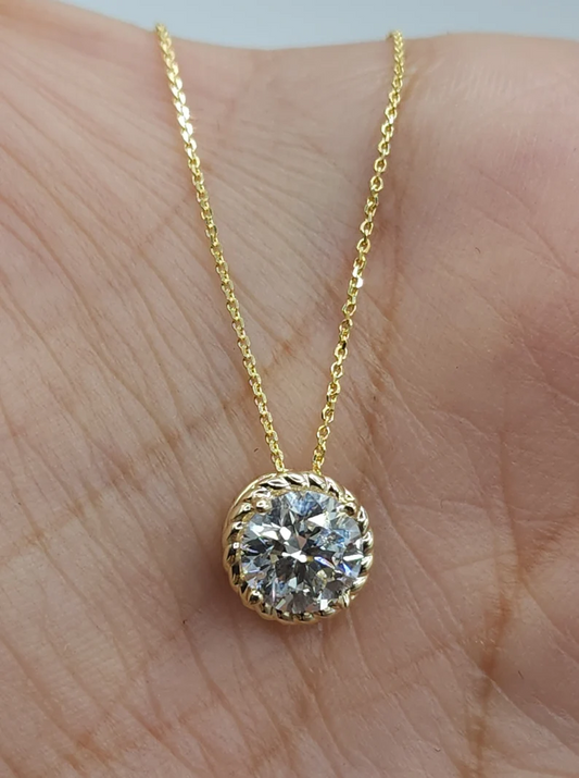14Kt Gold 1 Ct Lab Grown Diamond Bezel Necklace