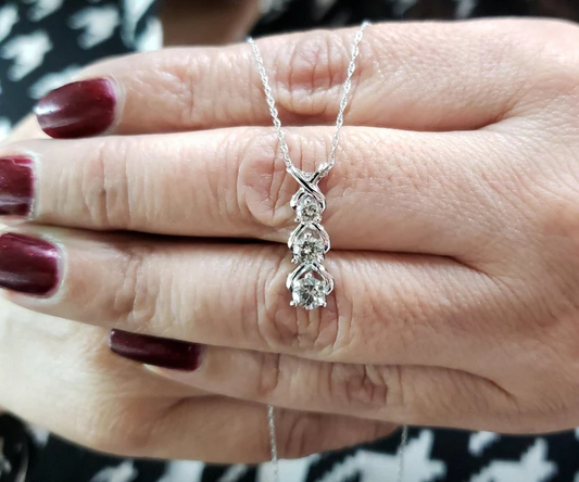 14Kt Gold 0.12 Ct Lab Grown Diamond 3 Stone Pendant Necklace
