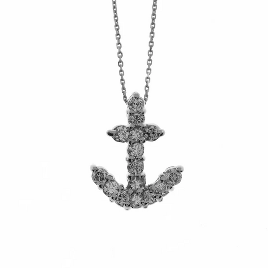 14Kt Gold 0.35 Ct Lab Grown Diamond Anchor Cross Pendant Necklace
