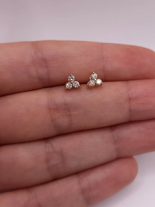 14Kt Gold 0.24 Ct Lab Grown 3 Stone Diamond Earrings