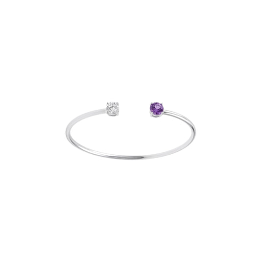 14Kt Gold Alexandrite and Lab Grown Diamond Open Cuff Bangle