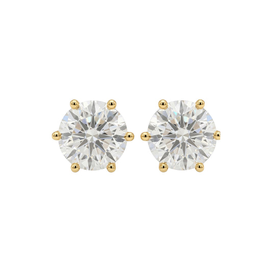 14Kt Gold 5 Ct 6 Prong Lab Grown Diamond Stud Earrings