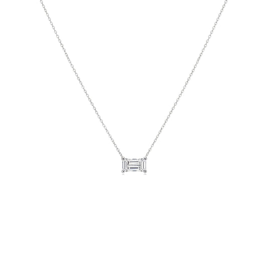 14Kt Gold 0.50 Ct East West Lab Grown Emerald Cut Diamond Pendant Necklace