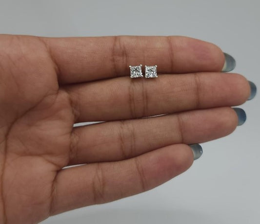 14Kt Gold 0.75 Ct Lab Grown Princess Cut Square Diamond Stud Earrings