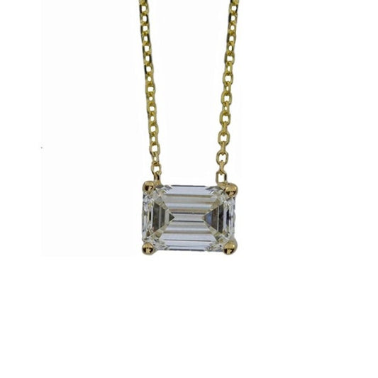 14Kt Gold 2 Ct Lab Grown Emerald Cut Diamond Solitaire Pendant Necklace