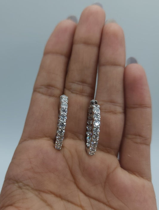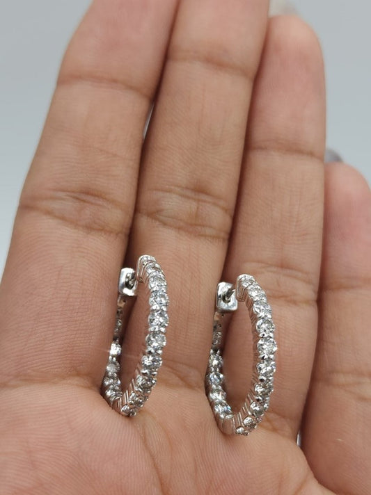 14Kt Gold 2.51 Ct Lab Grown Inside & Outside Diamond Huggie Hoop Earrings