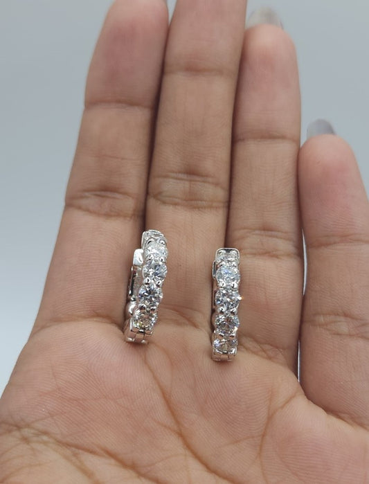 14Kt Gold 2.11 Ct Lab Grown Inside & Outside Diamond Huggie Hoop Earrings