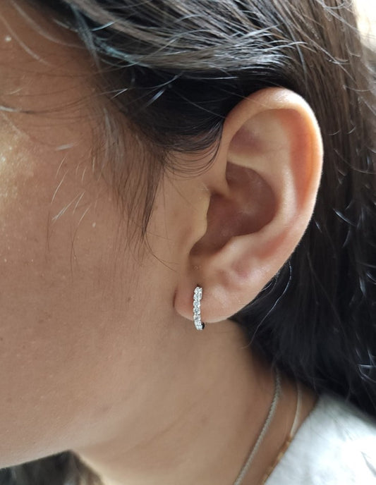14Kt Gold 0.42 Ct Lab Grown Inside & Outside Diamond Huggie Hoop Earrings