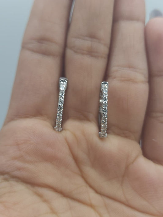 14Kt Gold 1.76 Ct Lab Grown Inside & Outside Diamond Huggie Hoop Earrings
