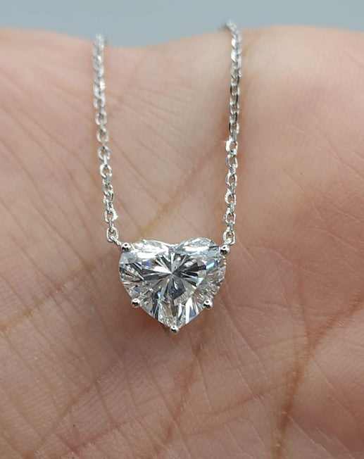 14Kt Gold 1 Ct IGI Certified 5 Prong Heart Lab Grown Diamond Pendant Necklace