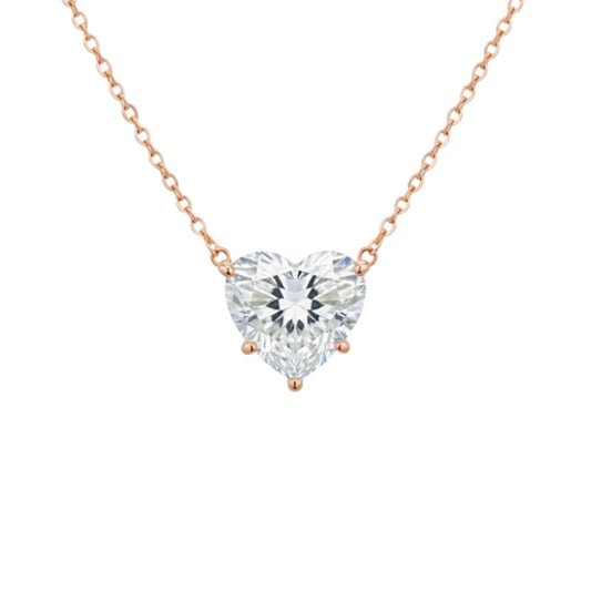 14Kt Gold 1 Ct 5 Prong Heart Lab Grown Diamond Pendant Necklace