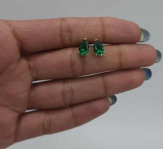 14Kt Gold Emerald Teardrop Pear Shape Stud Earrings