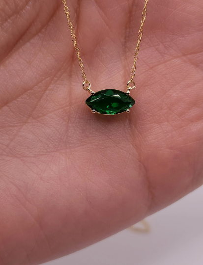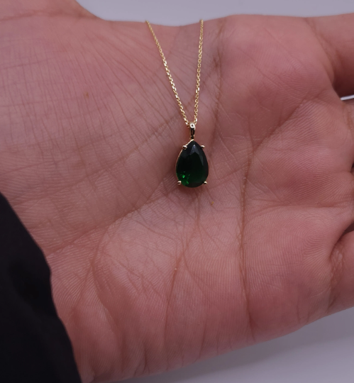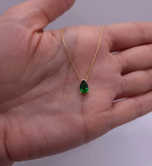 14Kt Gold Emerald Teardrop Pendant Necklace