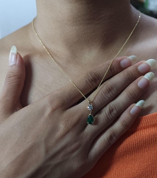 14Kt Gold Emerald Teardrop & Lab Grown Diamond Pendant