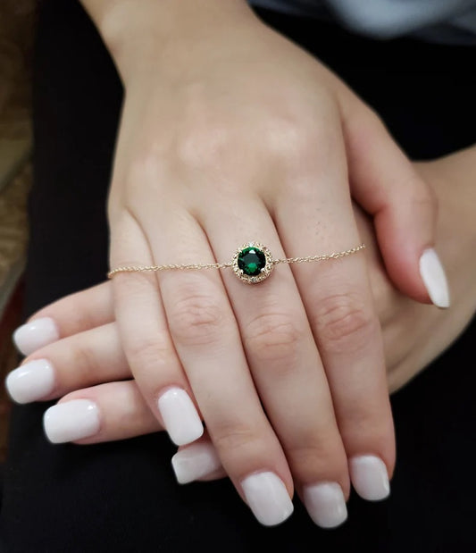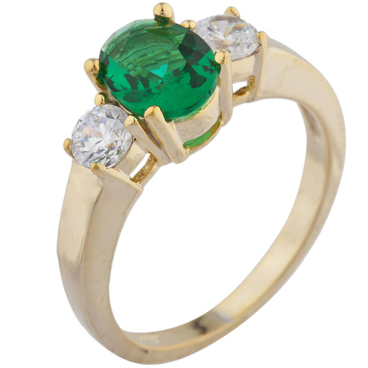 14Kt Gold 2 Ct Emerald & Zirconia Oval Ring