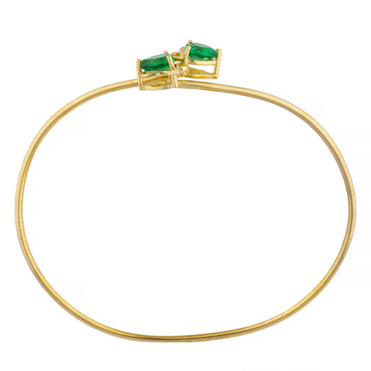 14Kt Gold Emerald & Diamond Devil Heart Bangle Bracelet