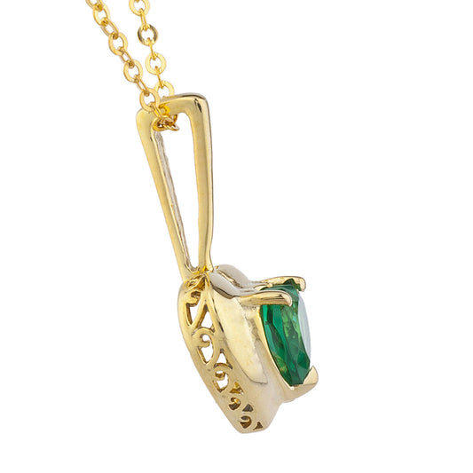 14Kt Gold Emerald Heart Design Pendant Necklace