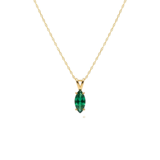 14Kt Gold Emerald Marquise Pendant Necklace