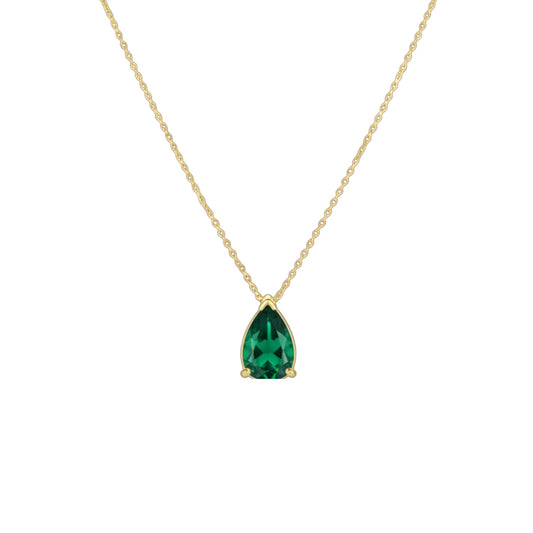 14Kt Gold Emerald Teardrop Necklace Pendant