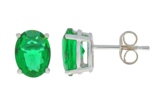 2 Ct Emerald & Diamond Round Stud Earrings 14Kt White Gold