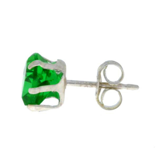 14Kt White Gold Emerald Bezel Round Stud Earrings