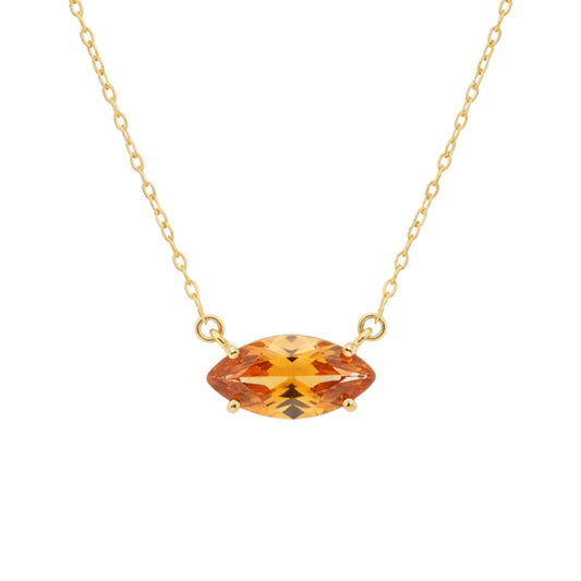 14Kt Gold Orange Citrine Marquise Pendant Necklace