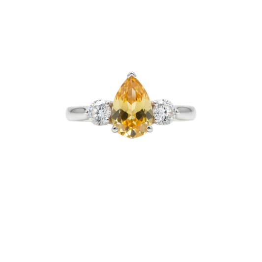 Yellow Citrine & Lab Grown Diamond Pear Round ring .925 Sterling Silver