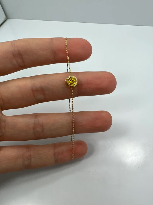 14Kt Gold Smoky Topaz Dainty Round Pendant Necklace